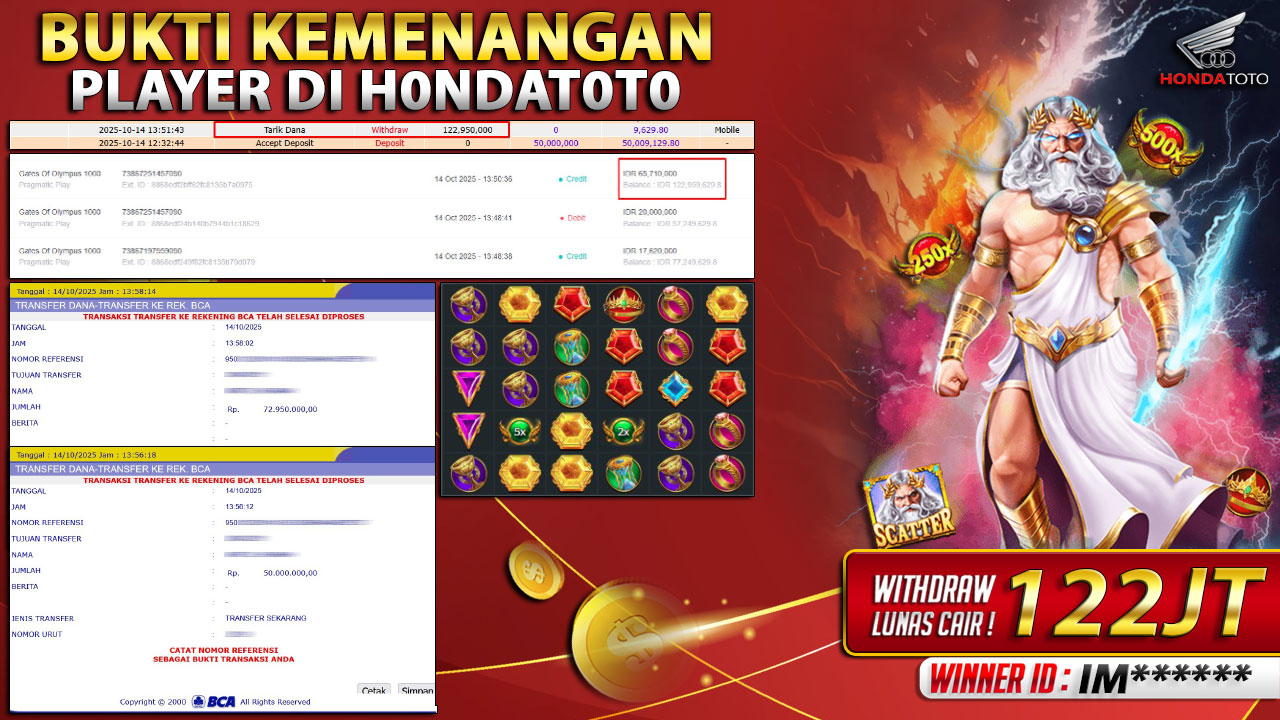 Bandar togel HONDATOTO merupakan bandar togel dan slot online yang membayar semua kemenangan member hingga lunas. Setiap pembayaran pada situs kami dilakukan dengan cara transfer ke rekening tujuan yang sudah di daftarkan pada situs togel online kami, Pembayaran hanya dapat di proses jika rekening yang di daftarkan telah valid dan dapat di transfer. Semua kemenangan member yang mendapatkan hadiah jackpot terbesar akan kami posting agar semua pemain dapat melihat bandar situs terpercaya HONDATOTO ini membayar semua kemenangan member hingga lunas. Setiap postingan yang kami posting akan kami lakukan sensor pada nomor rekening 4 digit dan nama rekening untuk menjaga privasi dan kerahasiaan member. Postingan Jackpot yang kami posting agar member atau pemain yang belum pernah bermain bisa melihat bandar togel Bukan Kaleng Kaleng Seperti HONDATOTO ini, Semua postingan jackpot yang kami posting dapat di lihat data keasliannya melalui nomor reff yang di tunjukan pada bank atau mbanking saat kita melakukan transfer.