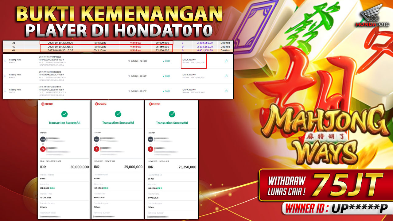Bukti Kemenangan 20 OKTOBER 2025 Di MAHJONG WAYS WD 75 Juta