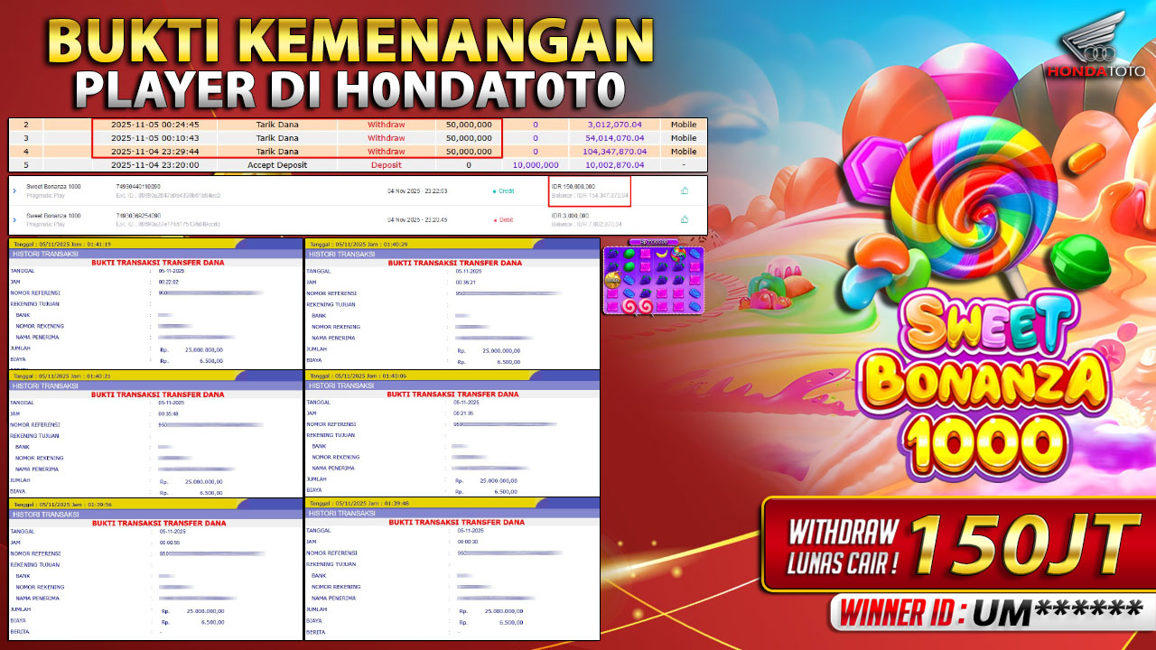 Bukti Kemenangan 05 NOVEMBER 2025 Di PRAGMATIC PLAY SWEET BONANZA 1000 WD 150 Juta
